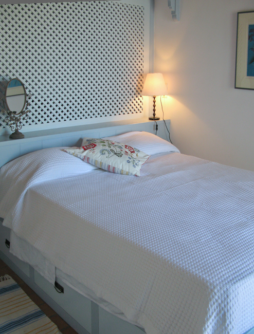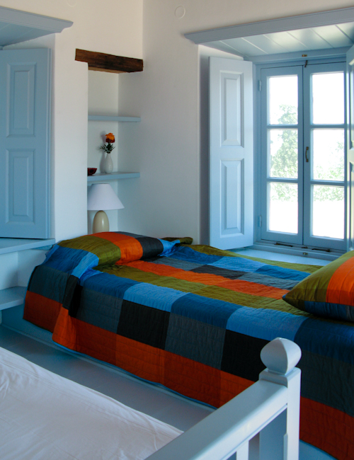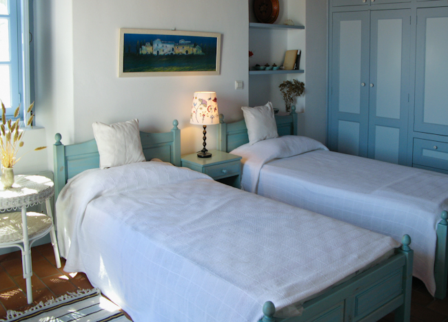 Three bedrooms in all, made up of two twin bedrooms and a double bedroom with a traditional double wooden bed and two shower rooms. The size of the double bed is 2.0 x 1.65 metres.